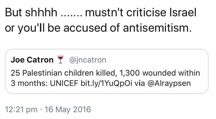 But what have these questions got to do with anti-Semitism? The assumption is that the Israeli state and Britain’s Jews are synonymous. If so then it is Labour’s Inquisitors who are anti-Semitic because if the actions of Israel’s military are to be associated with British Jews then equally British Jews can be held accountable for Israel’s actions. The Compliance Unit are acting as the gatekeepers of criticism of Israel, all in the name of ‘anti-Semitism’.